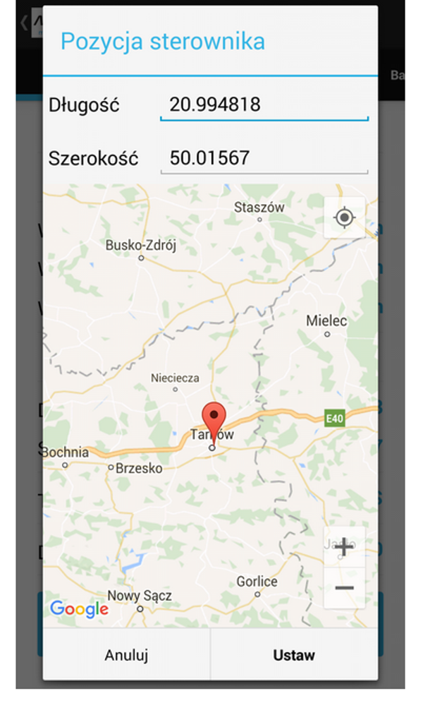 - automatyczna lokalizacja sterownika na mapie aplikacji ASTmobile